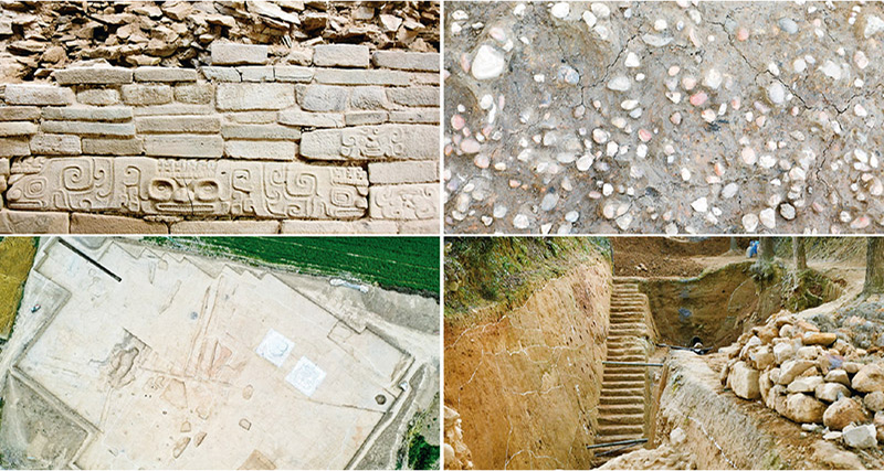 2020年中华文明探源工程第五阶段实施以来,在深化对中华文明起源与早期发展阶段整体认识的同时,聚焦关键时间节点和重大事件,精心设计多学科综合研究,取得了一系列进展。左上图为陕西神木石峁遗址皇城台出土的石雕。右上图为四川广汉三星堆遗址发掘区出土的玛瑙籽料。左下图为山西襄汾陶寺遗址宫城内的大型夯土建筑基址。右下图为浙江余杭良渚遗址水利工程遗迹。新华社发