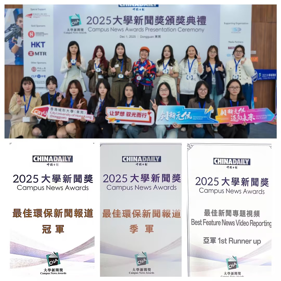 12月1日下午,由中国日报主办的“2025大学新闻奖”颁奖典礼于香港城市大学(东莞)举行。我校文学与新闻学院学子在大赛中表现卓越,共三件作品脱颖而出,分别荣获中文组“最佳环保新闻报道”冠军与季军,“最佳新闻专题视频”亚军。我校成为本届赛事中重庆市唯一获奖高校,荣获本届大赛“最踊跃参与学校奖”。