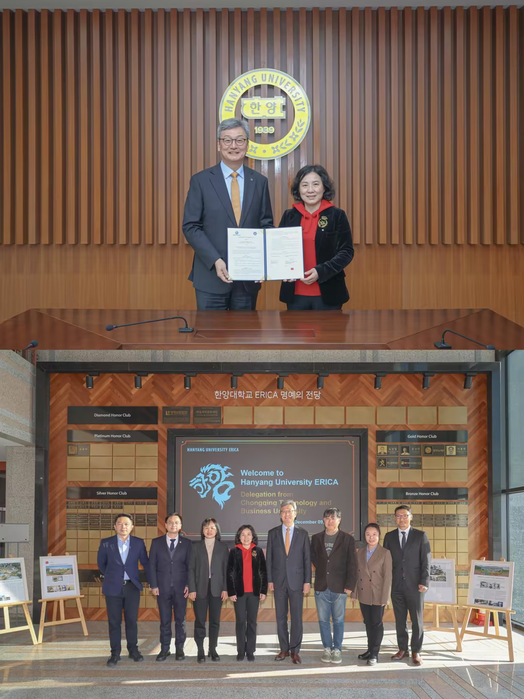 12月9日,代表团访问韩国汉阳大学ERICA校区。汉阳大学行政副校长李奇衡教授、国际事务副校长柳奉永教授等校方代表接待了我校代表团。会上,双方共同签署了合作备忘录,标志着两校合作伙伴关系的正式确立。双方相互介绍了办学历史、人才培养理念及学科发展特色,重点就“商工融合”的创新人才培养模式及中外合作办学经验进行了分享。基于优势互补,双方在博士层次开展中外合作办学达成重要初步共识。访问期间,代表团还参观了校区内Kakao数据中心等产业园区,实地感受其产学研融合成果,并诚挚邀请汉阳大学专家来华参加2026年国际产学研用会议及相关活动,也欢迎汉阳大学学生来校攻读硕士、博士学位。
